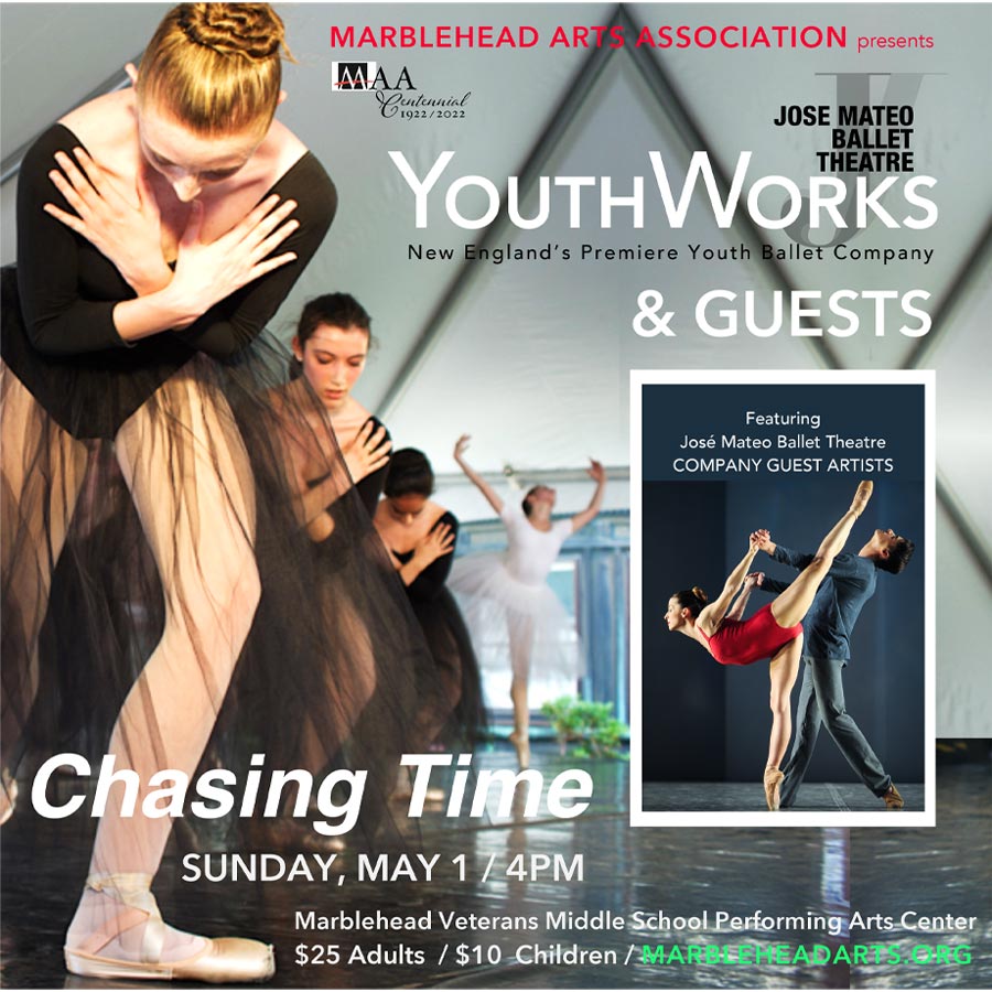 The Marblehead Arts Association is proud to present “Chasing Time” by the Jose Mateo Ballet Theatre as part of our 2022 Centennial celebration. This performance will take place at the Marblehead Veterans Middle School Performing Arts Center.