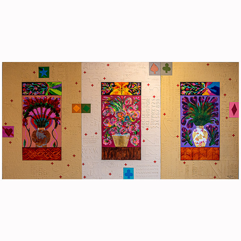 The Joie de Vivre exhibit contains 28 of Laliberte’s vibrant canvases, banners and sculptures creating a joyous, highly-symbolic celebration of life. His unmistakable works are full of rich imagery that is whimsical, exuberant and evocative. When first viewing Laliberte’s work, the viewer struck by the sheer energy of color and image. His palette is a kaleidoscope, ranging from warm reds and oranges to cool blues and greens.