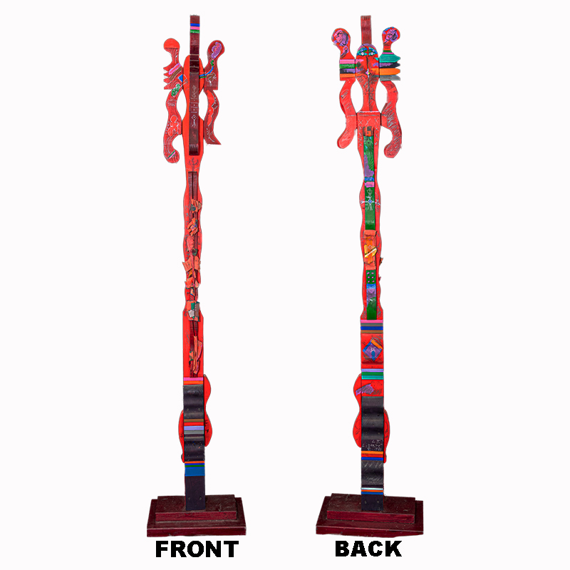 The Joie de Vivre exhibit contains 28 of Laliberte’s vibrant canvases, banners and sculptures creating a joyous, highly-symbolic celebration of life. His unmistakable works are full of rich imagery that is whimsical, exuberant and evocative. When first viewing Laliberte’s work, the viewer is struck by the sheer energy of color and image. His palette is a kaleidoscope, ranging from warm reds and oranges to cool blues and greens.
